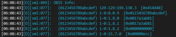 Although the SML protocol is well defined, it gives a lot of freedom to the manufacturers how to store and identify the transmitted data. Within a telegram the physical values are identified by OBIS codes (Object Identification System). If it is known which code the manufacturer assigns to the physical value, the corresponding value can be extracted.
